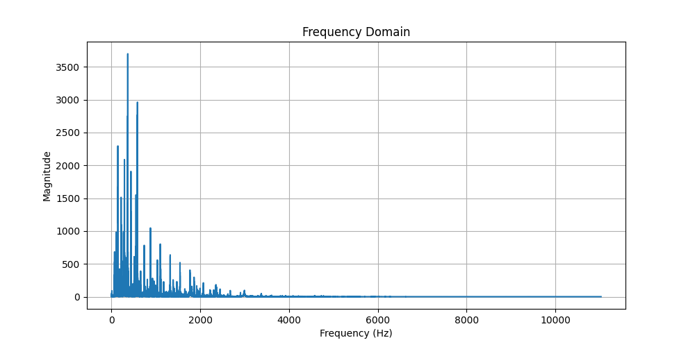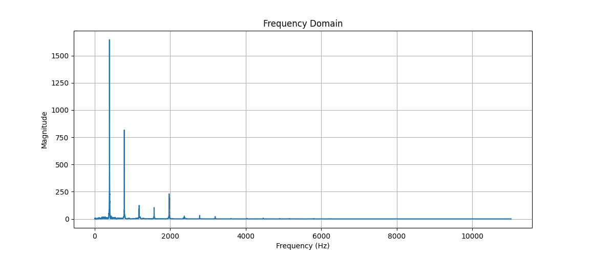 위 코드를 적용하여 아래의 frequenct domain에서의 그래프를 확인할 수 있었다.